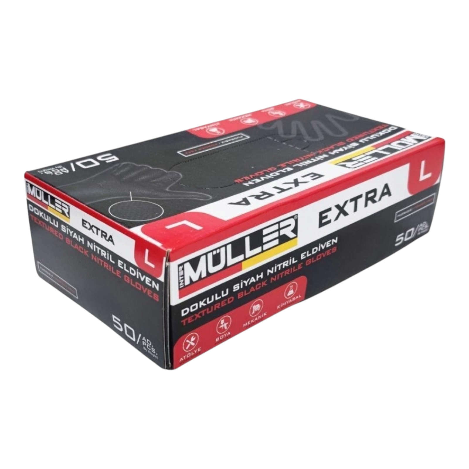 Müller Siyah Balık Sırtı Desenli Pudrasız Nitril Eldiven - L Beden (50'li Kutu)